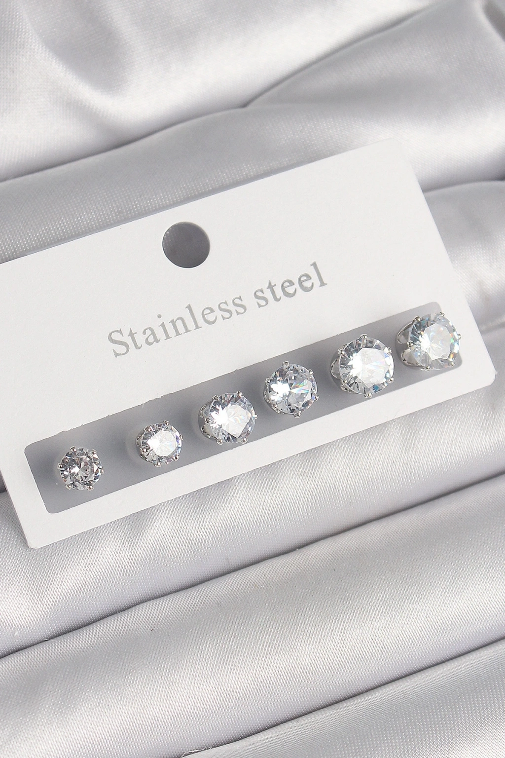 Pirinç Gümüş Renk Küpe Seti 6'lı