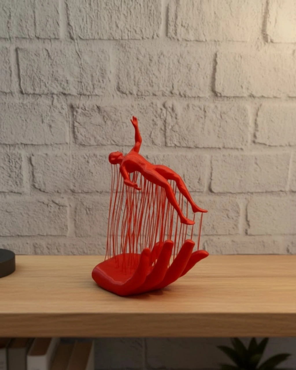 3D El Formlu İnsan Figürü Kırmızı Soyut Tasarım Dekoratif Biblo 12x18 cm