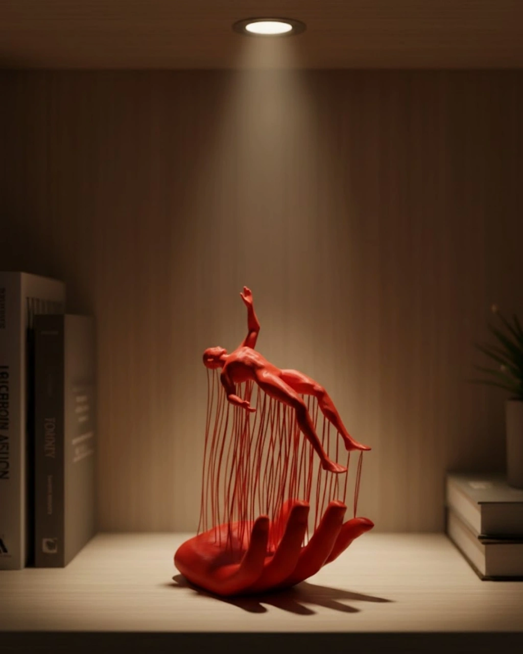 3D El Üzerinde İnsan Figürü Kırmızı Sanatsal Masa Üstü Dekor 12x18 cm
