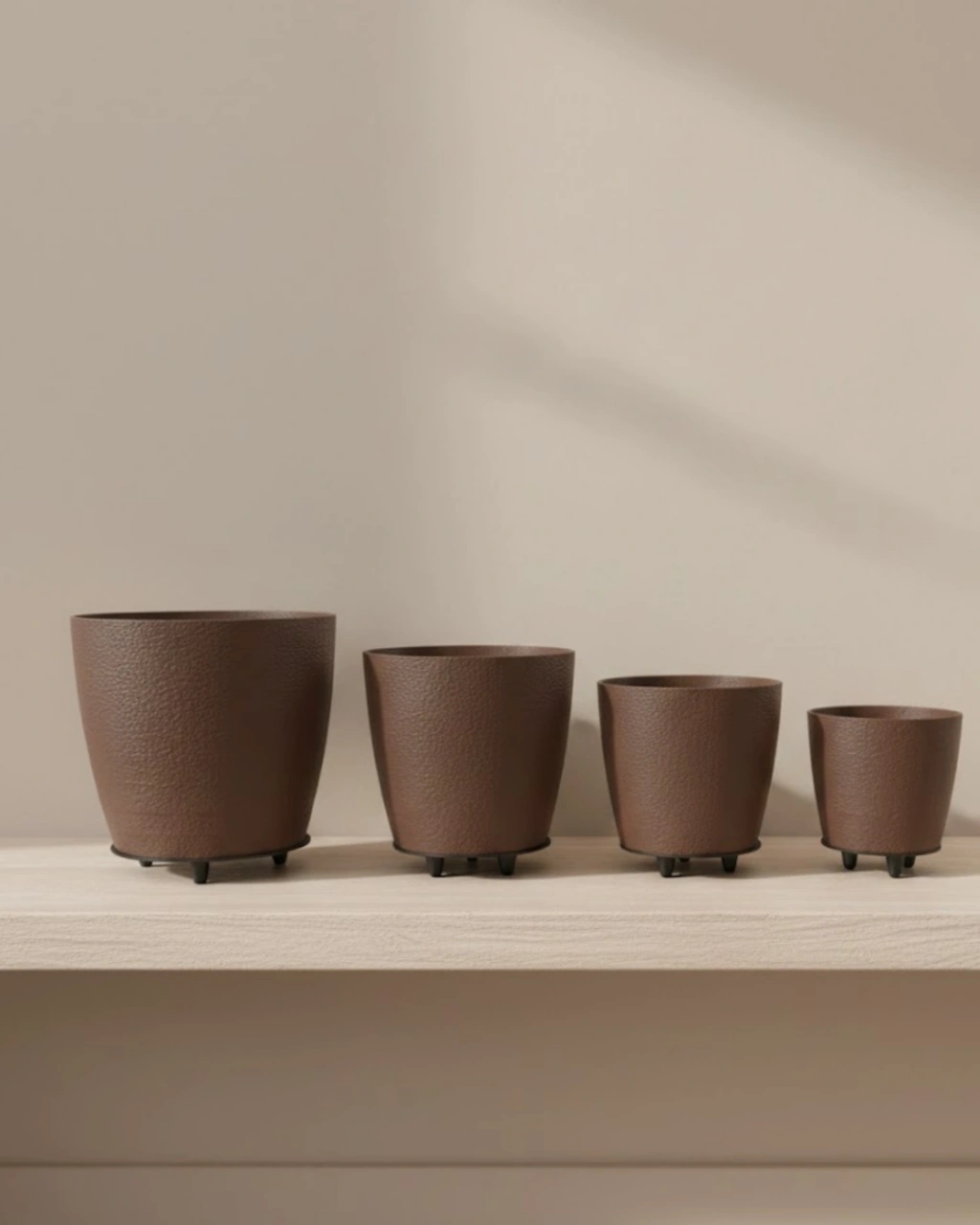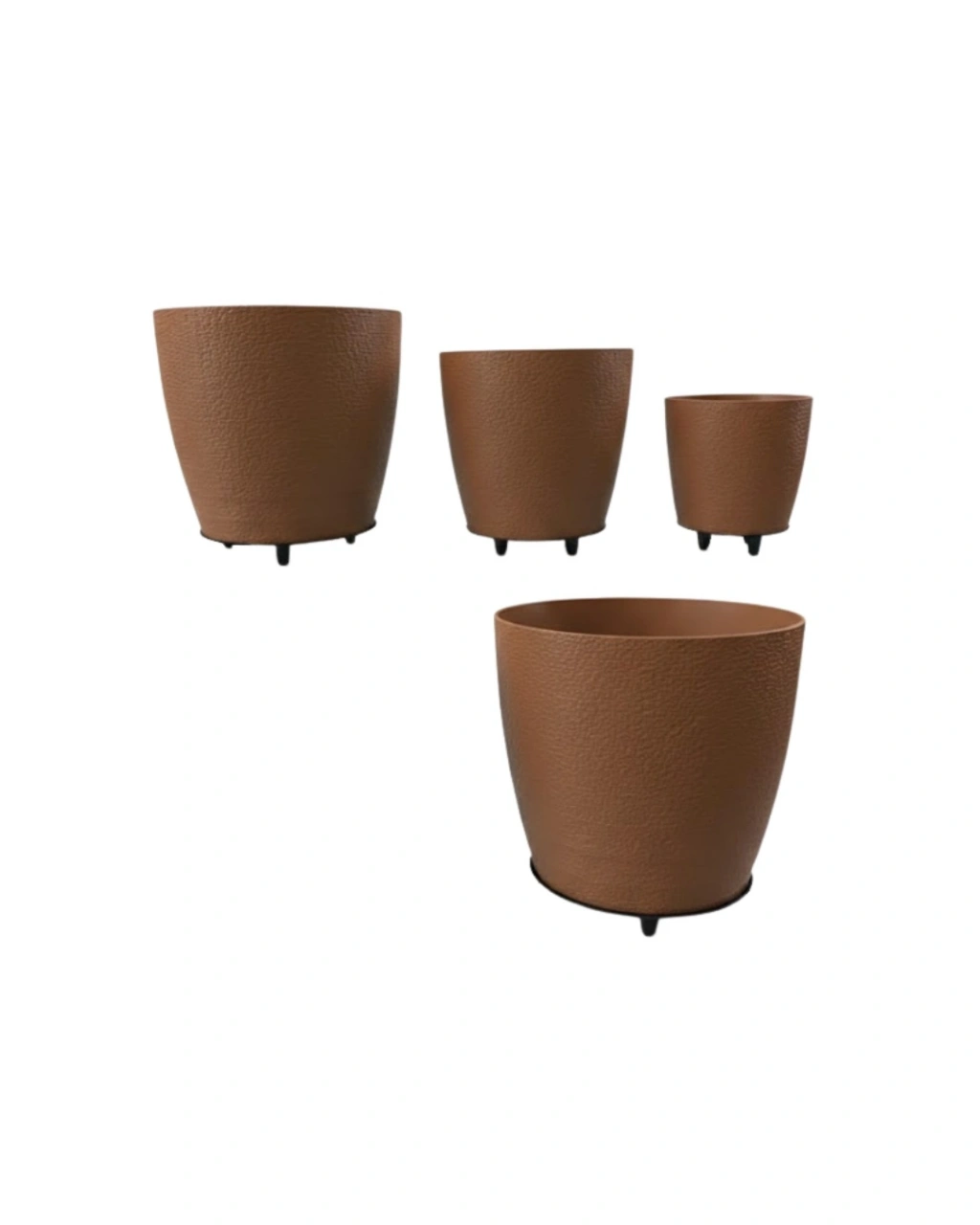 4’lü 3D Kahverengi Ayaklı Dekoratif Saksı Takımı Modern Tasarım