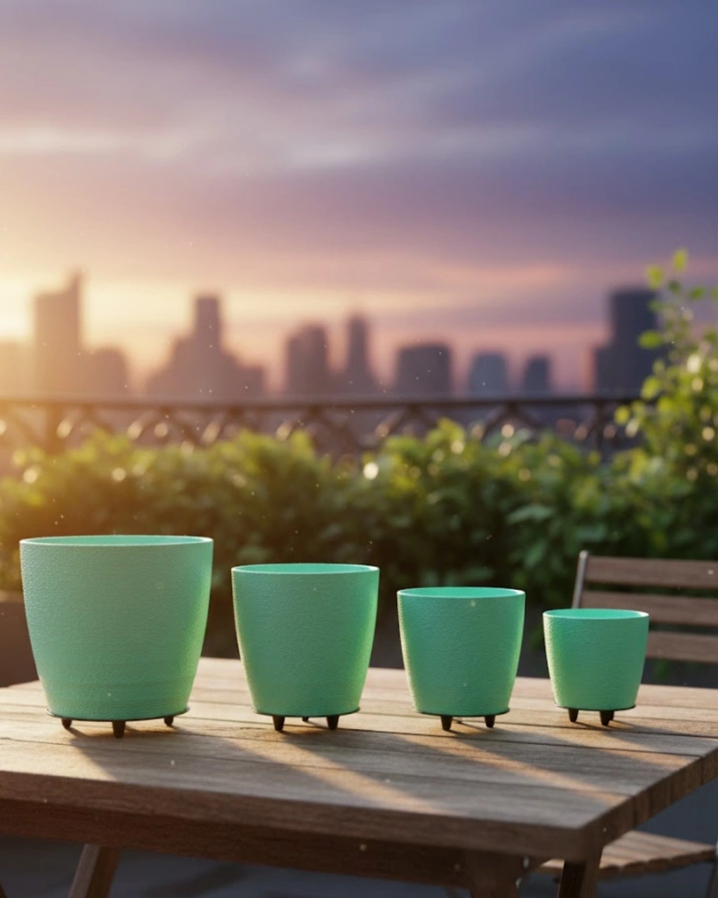 4’lü 3D Ayaklı Yeşil Saksı Seti Dekoratif Modern Tasarım
