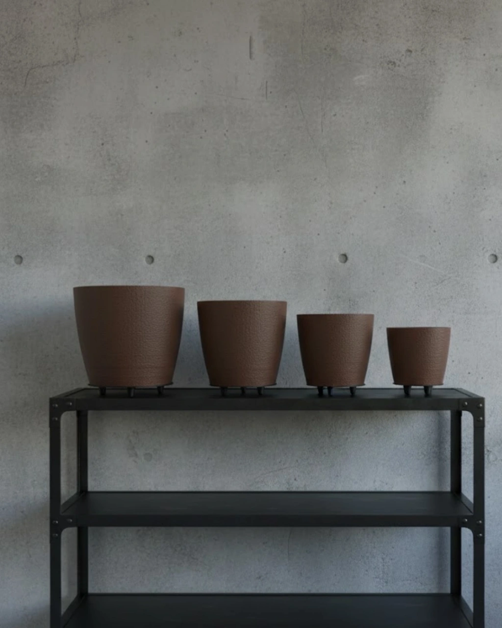 4’lü 3D Kahverengi Ayaklı Dekoratif Saksı Takımı Modern Tasarım