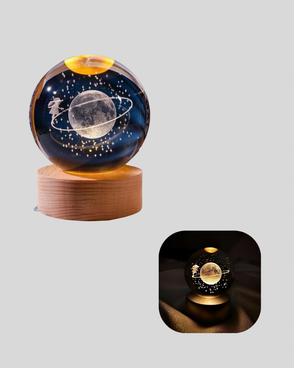 Ahşap Standlı Sarı Işıklı Dekoratif Küre Kız Figürü Tasarım