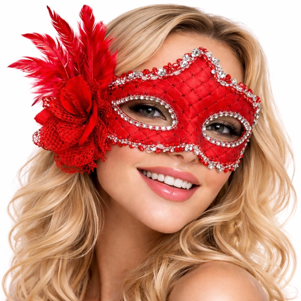 Parlak Taş Detaylı Göz Çevresi Kapitone Desenli Şık Yüzey Büyük Tüy Ve Çiçek Aksesuar Detayı Konforlu Ve Hafif Tasarım Arkadan İpli Kullanım Kırmızı Rengin Enerjisi İle Kombinlerinizi Tamamlayan Bu Maske; Karnaval, Balo, Kostüm Partileri Ve Özel Organizasyonlar İçin Mükemmel Bir Tercihtir.