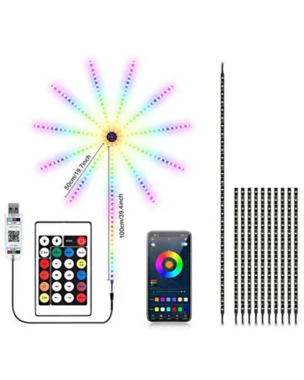 Akıllı RGB LED Havai Fişek Duvar Lambası Kumandalı ve Uygulama Kontrollü