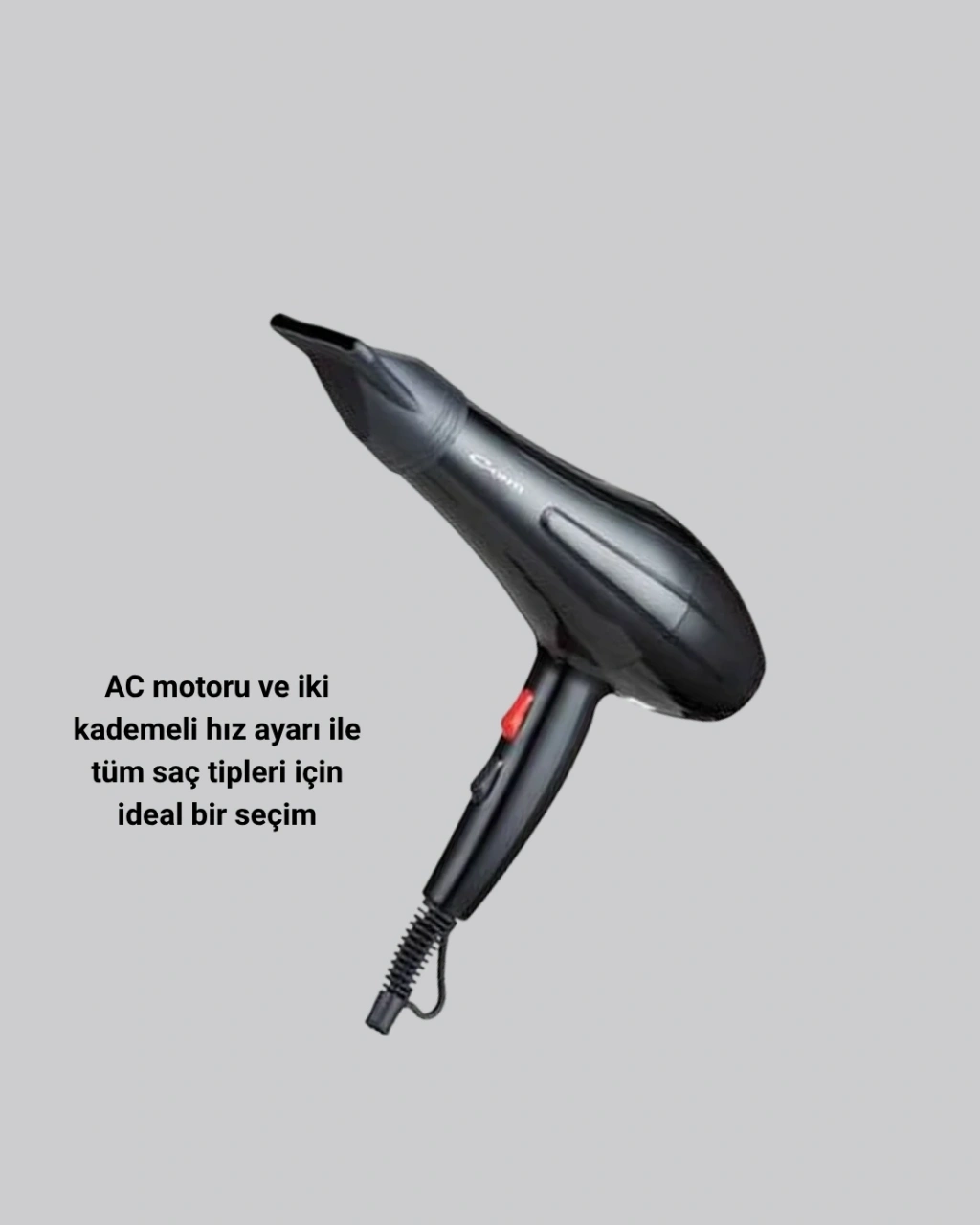 Profesyonel 2200W Fön Makinesi – AC Motorlu, Hızlı Kurutma, Hafif Tasarım