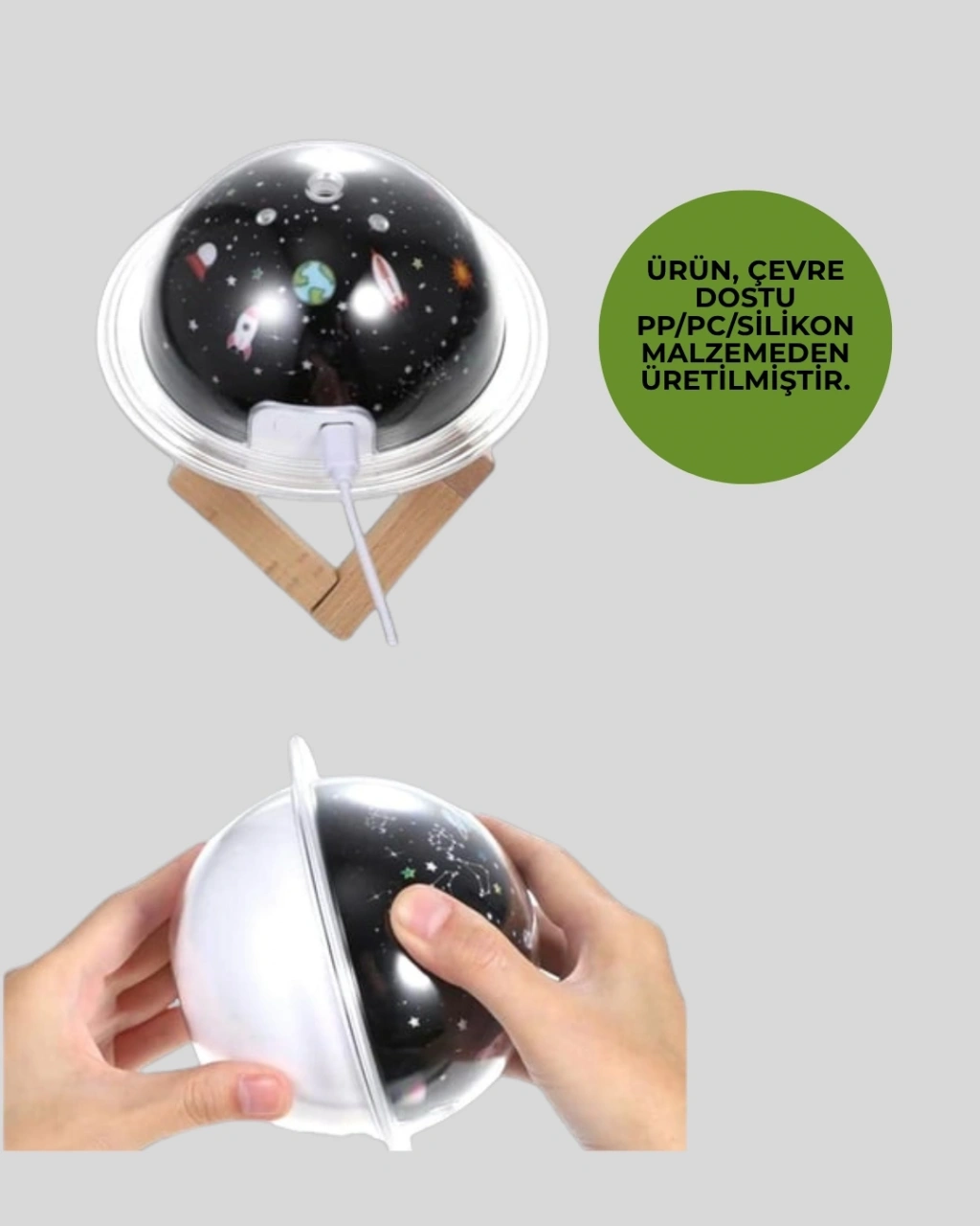 Uzay Temalı Projeksiyonlu Nemlendirici USB Güçlü Gece Lambası