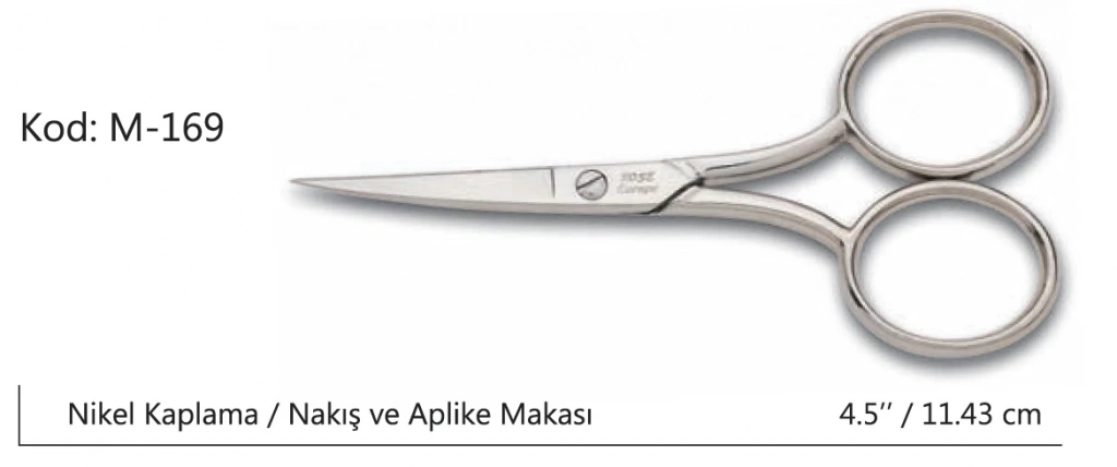 Rose Europe Az Kalın Nakış Makası, zarif ve hassas nakış işlerinin yanı sıra ince detaylı dikiş projeleri için tasarlanmış bir kesme aracıdır. 11,43 cm uzunluğunda ve No:4.5 boyutunda olan bu makas, üstün kaliteye sahip materyallerle üretilmiş olup, ince işçilik ve dayanıklılığıyla dikkat çeker.