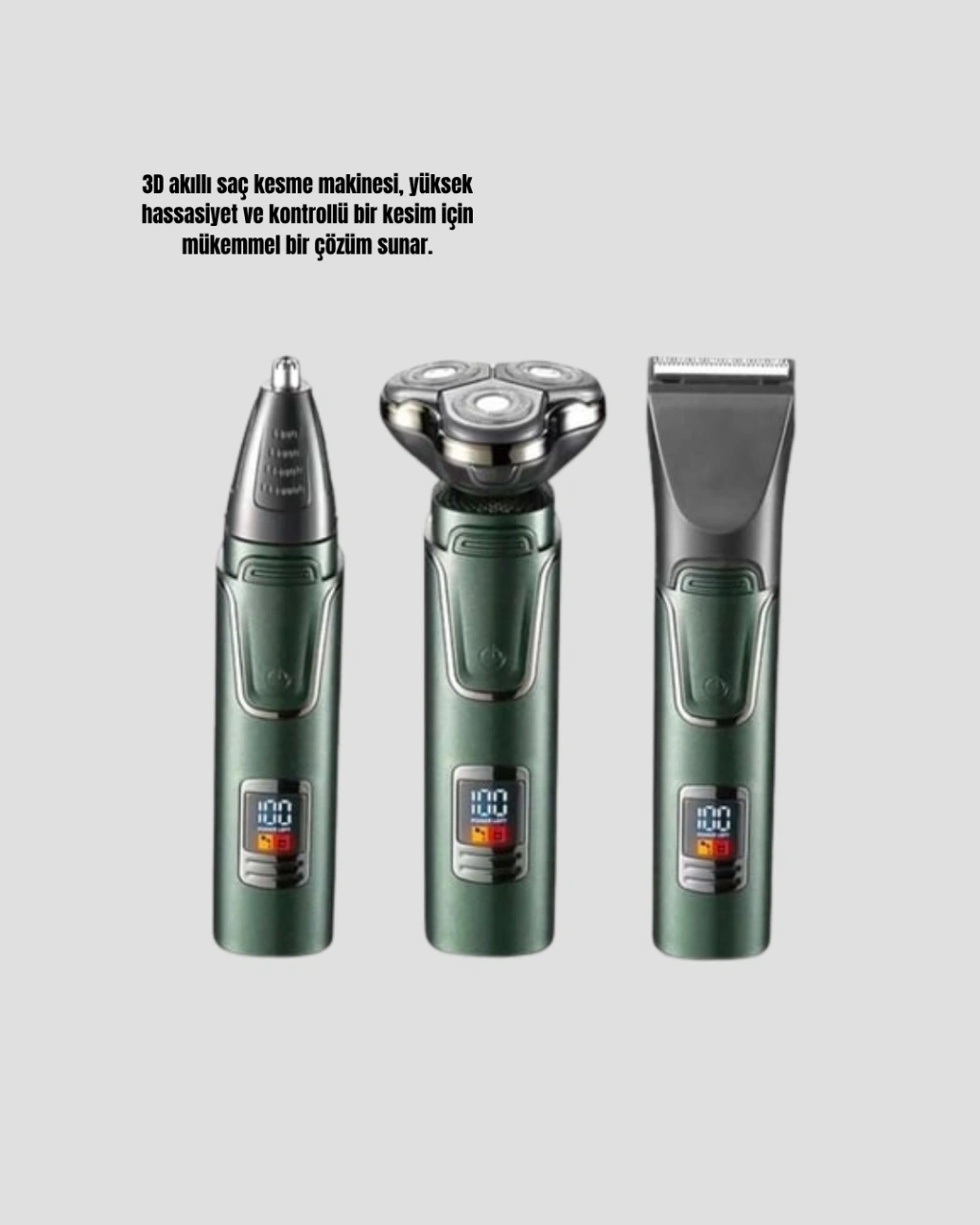 3D Akıllı Kesim Teknolojili Şarjlı Tıraş Seti – 3 Başlıklı, Paslanmaz Çelik lı